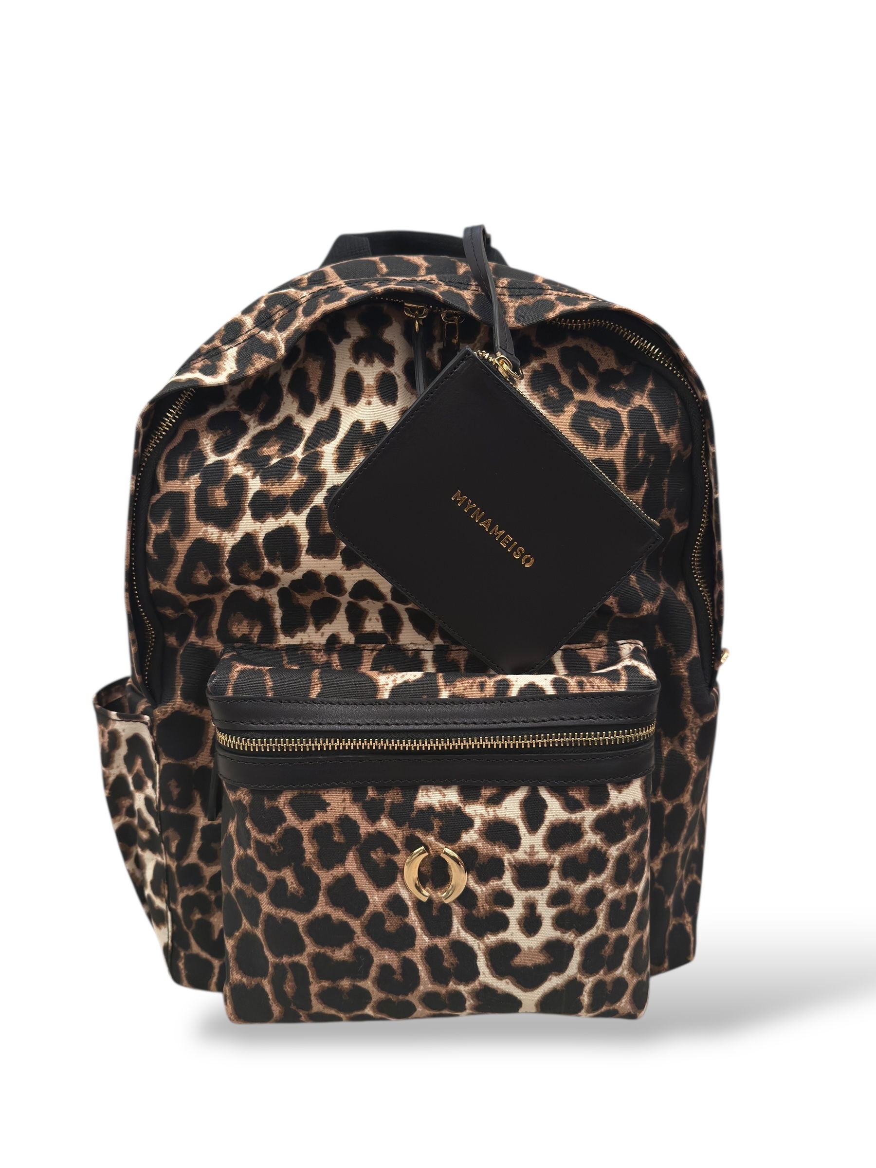 Zaino took inspiration from school backpack. Main compartment double zip closure. A front pocket with zip closure. One side pocket. Top handle and double adjustable shoulder straps. Inside zipped pocket. Mynameiso blue cotton lining.